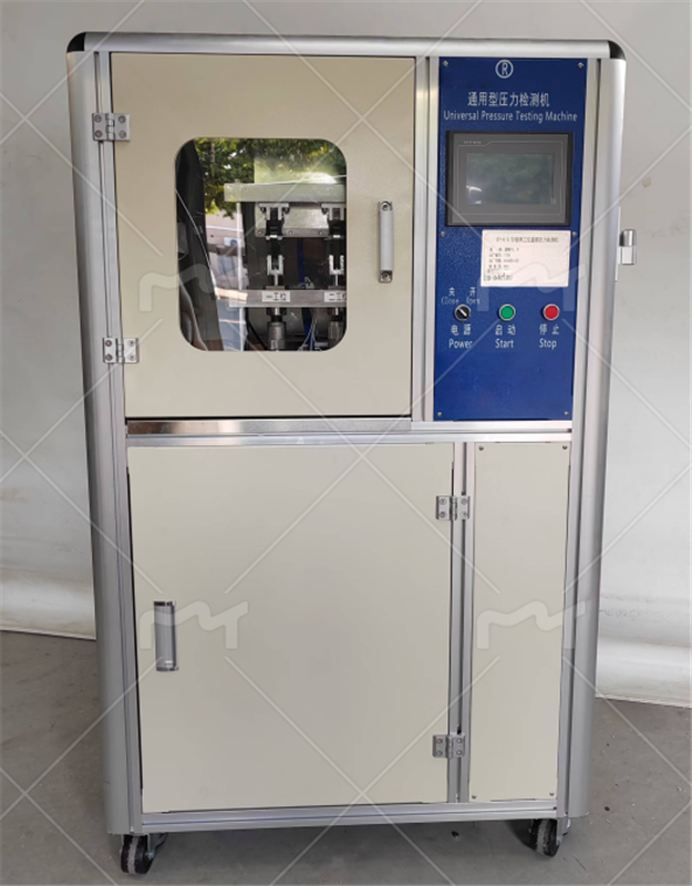 主要由四套气缸驱动的检测夹具组件,单级气体增压泵,数字压力变送器,高压电磁阀,PLC触摸屏等控制电器,电脑及配套的测试数据采集系统等组成。